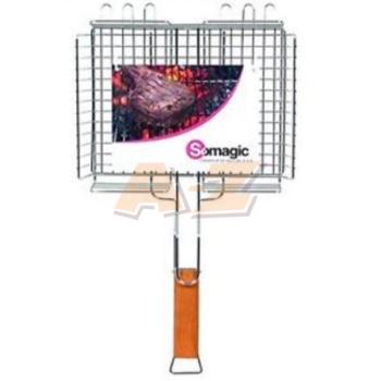 Grilovacia mriežka dvojitá hlboká rozmer grilovacej plochy 32x25x5.5cm. Jeden úchyt.