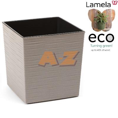 Novinka ECO kvetináče s prímesou 40% dreva. Unikátny vrúbkovaný dizajn povrchu, odolný voči škrabancom.