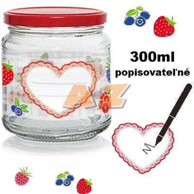 farba: číra / farebný dekor ovocie so srdcom červené viečko