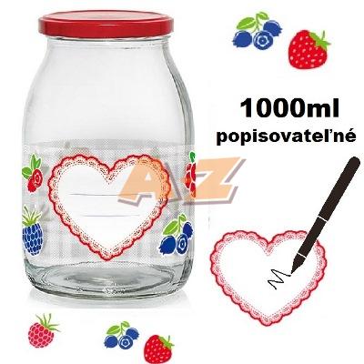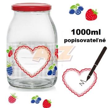 farba: číra / farebný dekor ovocie so srdcom / červené viečko