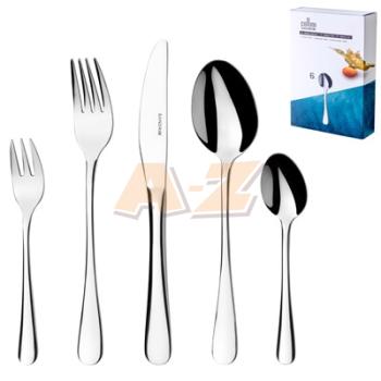 balenie obsahuje: 6xnôž, 6xvidlička, 6x dezertná vidlička, 6xlyžica, 6xlyžička