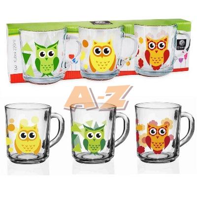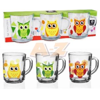 Šálky sklo 200ml SOVY 3mix 3ks