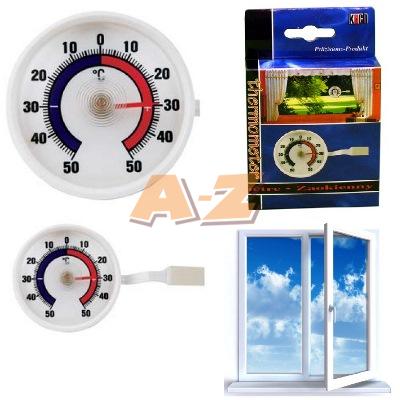 Okenný bimetalový teplomer. Teplotný rozsah -50°C až +50°C, rozlíšenie po 1°C